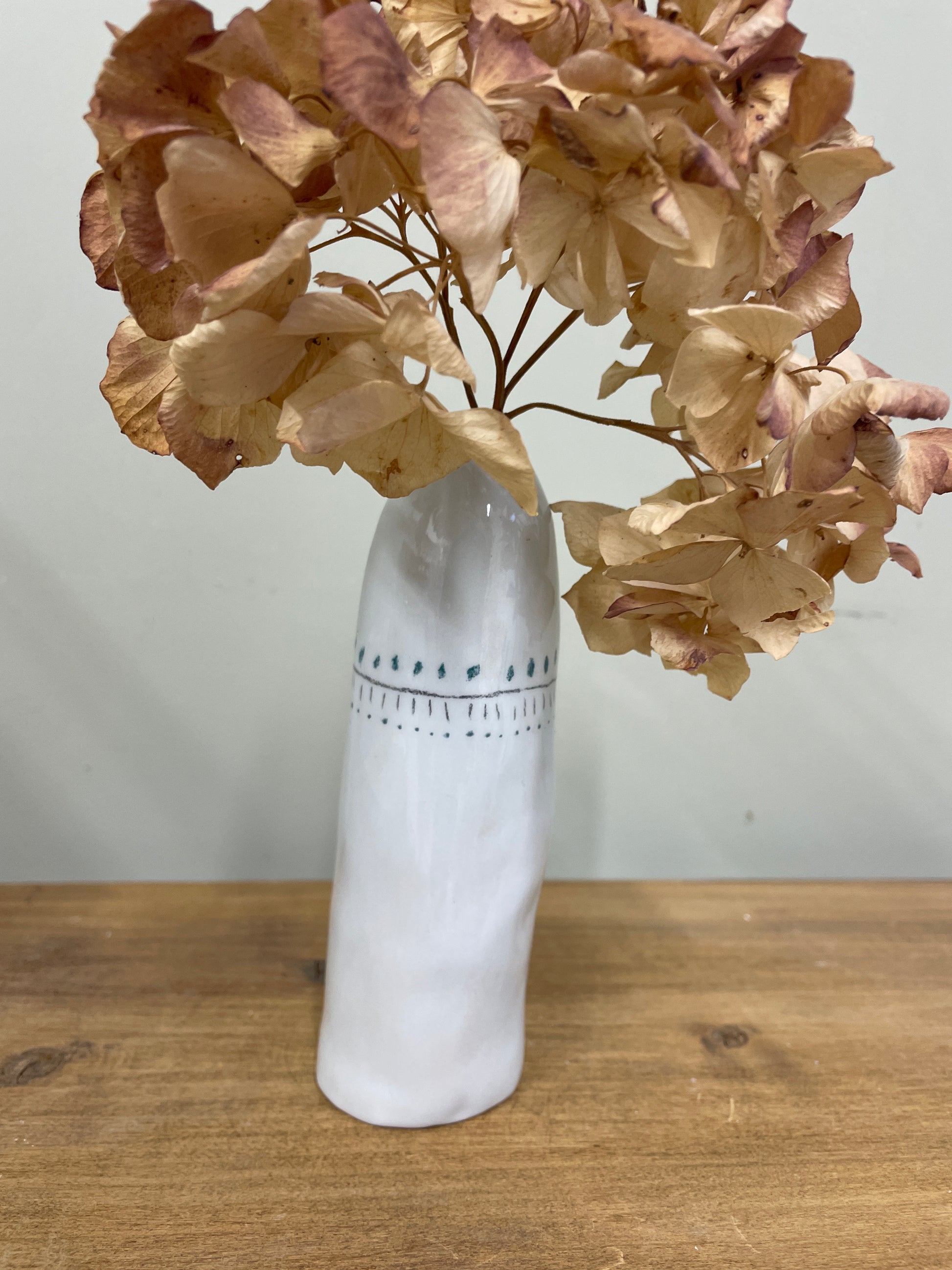 Modelé puis peint, le soliflore cuit une première fois à 980 degrés.